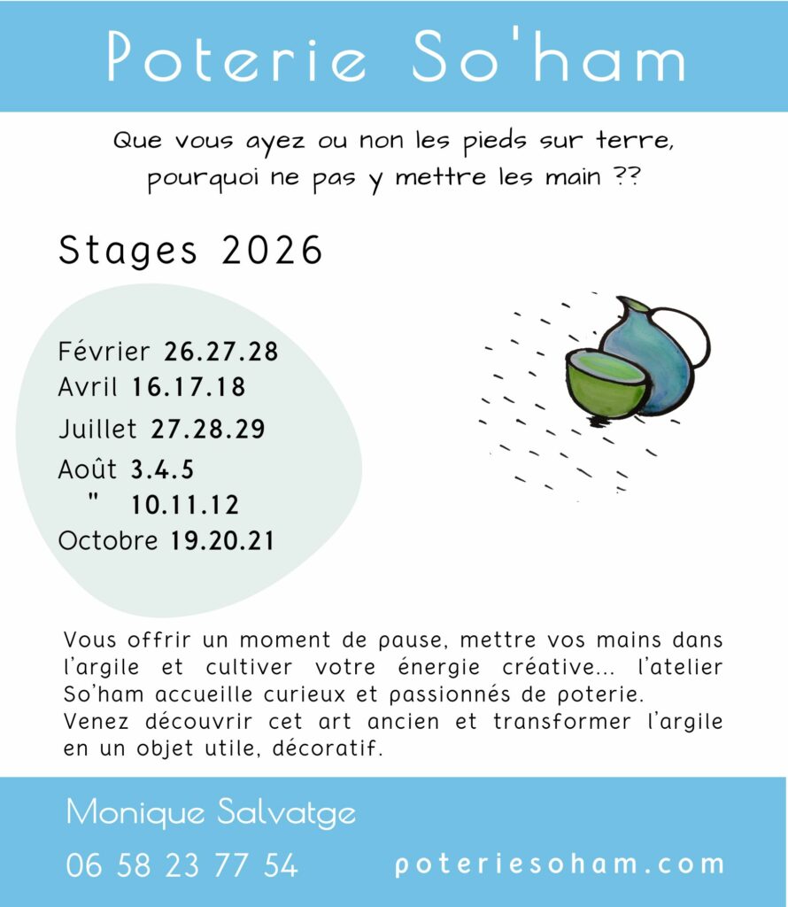 2 propositions de stages : à noter, la pratique et l’émaillage se font sur 2 dates différentes.